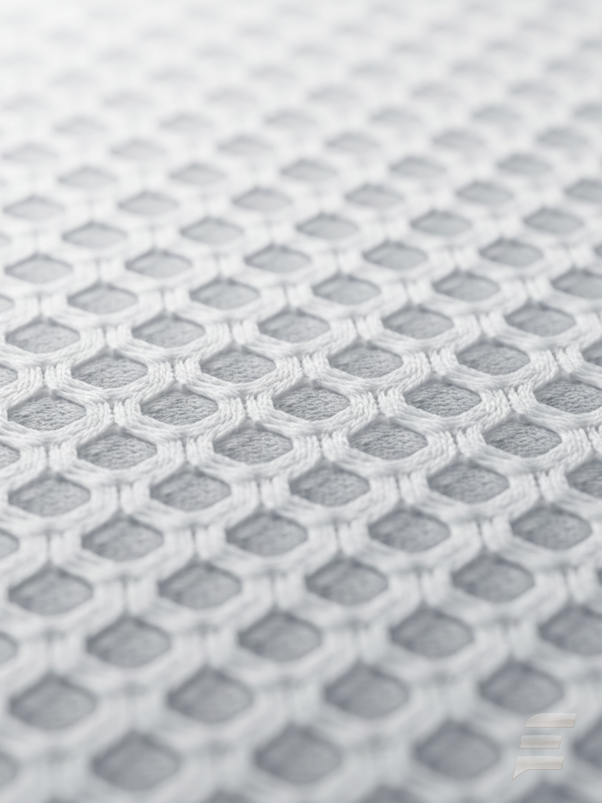 O toque é macio, a estrutura se molda ao corpo e o tecido volta ao formato original sem perder desempenho.